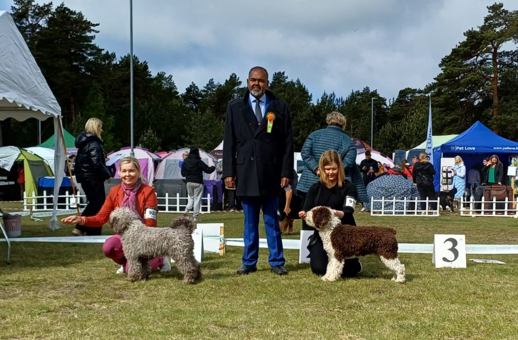 ”Heta” FI MVA FI JMVA NO MVA EE MVA EMMALINDAN HETA ja ”Rose” FI JMVA FLOCELA DE LA GALLAECIA ATLANTICA Liettuan muotovalioksi 25.05.2025 Liettuan Palangassa.